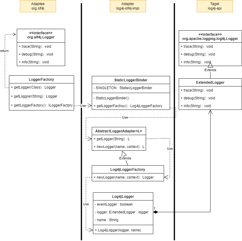 - Log4jLogger Adapter에서는 log4j의 ExtendedLogger를 내부변수로 구성(compostion)하여 해당 인스턴스 반환