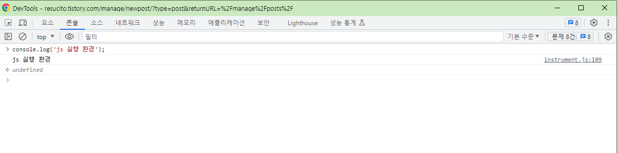 js는 '스크립트' 언어이고 이를 해석해서 실행시켜줄 환경이 별도로 필요합니다. 우리가 가장 흔하게 사용해왔던 실행환경은 바로 브라우저의 개발자 콘솔입니다. 여기에서 js를 실행하며 코드를 개발/테스트하는 경우가 많았고, 이에 상응해서 개발자 콘솔도 점점더 많은 기능을 가지게 되었습니다.